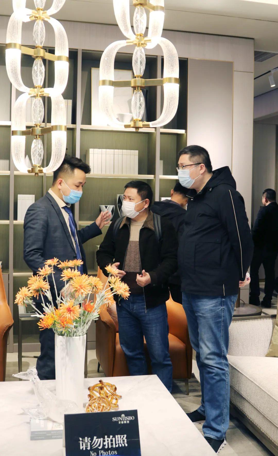 展廳內,專業的導師為嘉賓們詳細介紹了產品工藝特點、整體造型特色、裝飾元素以及色彩搭配等;還有全屋定制、固裝、營銷等部門高管,與經銷商熱情的交流溝通,并為大家講述了必一運動bsport體育的原創設計理念?!奥逅埂敝鞔虻牟町惢p奢,更是贏得了在場經銷商家人的高度贊譽;必一運動bsport體育用實際行動證明了在家居界不可比擬的產品優勢和實力。