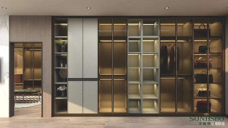 衣帽間開放式置頂設計,在追求簡單到極致的基礎上,給人感官一種簡約整潔的整體感受。打破常規(guī)的空間儲藏方式,脫離一切浮華與不實用,僅用最簡單的線條反映出主人優(yōu)雅的高品味。