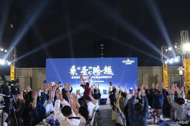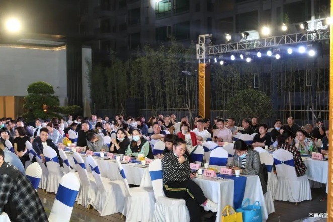 經(jīng)銷商晚宴當(dāng)日晚6時許,以【乘“圣”跨越】為主題的,必一通集團第45屆國際家具展接待晚宴暨2020年度優(yōu)秀經(jīng)銷商頒獎盛典,在營銷中心四樓景觀花園隆重舉行,來自全國各地的經(jīng)銷商朋友歡聚一堂,共同分享一場精彩紛呈的晚宴。