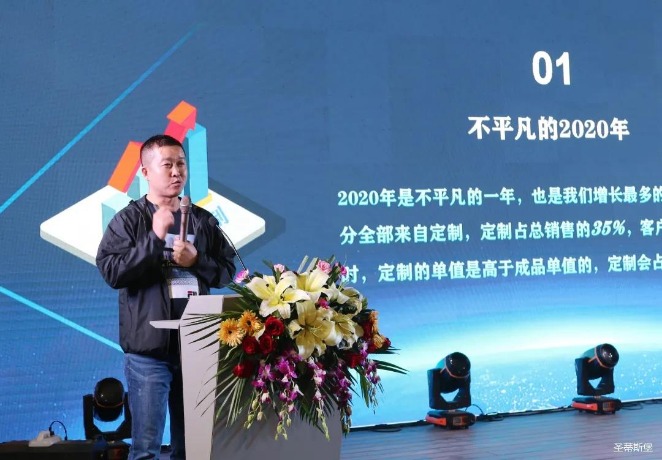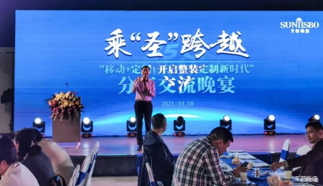 華燈璀璨的開場儀式,點燃了現(xiàn)場如火如荼的氣氛。必一通集團營銷總經(jīng)理陳玉偉先生對晚會進行了主題發(fā)言,他對2020年的營銷工作進行了總結(jié),并著重從營銷工作部署、重點項目開展、產(chǎn)品整合、拎包幫扶、渠道運營和移動+定制整裝優(yōu)勢等方面對2021年的營銷工作做了全面的統(tǒng)籌規(guī)劃。同時,他還講解了“美國夢凱莎床墊”新品的產(chǎn)品工藝、市場優(yōu)勢、產(chǎn)品定位,使經(jīng)銷商對我們的新產(chǎn)品擁有更深入的認(rèn)識和了解。
