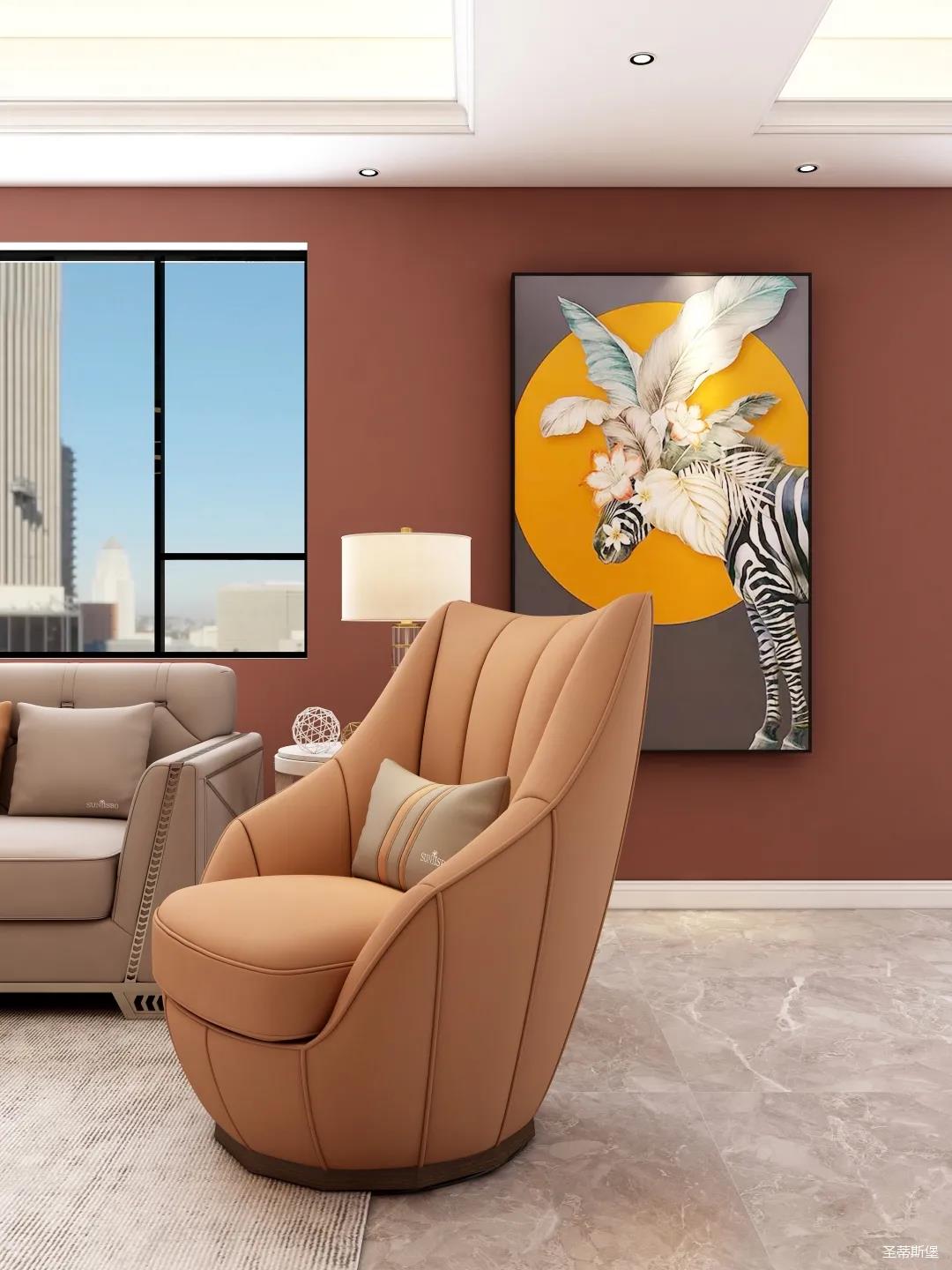 整體空間以高級內斂的暖色調為主,用沉著的暖灰與活躍橙作為點綴,給空間帶來了靈動的氣息,卻不過分搶眼。質地柔軟,回彈性極強的沙發、地毯,清新的綠植擺設,運用精美的金屬元素添加了空間的品質感。