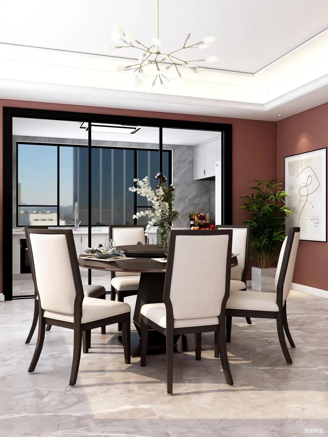 餐廳表姐更喜歡干凈素雅的氛圍,認為圓形餐桌不僅遵循傳統用餐,也寓意團團圓圓,讓圍桌吃飯的氛圍更溫馨。因此餐廳以黑白灰為基底,用圓形餐桌布局餐廳,在有限的空間內,同時也注重功能性。