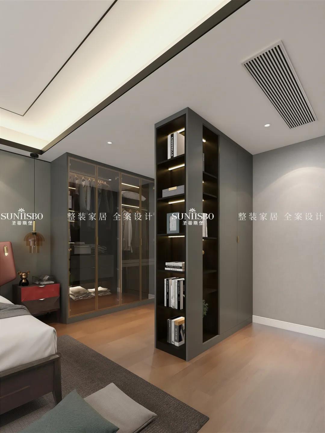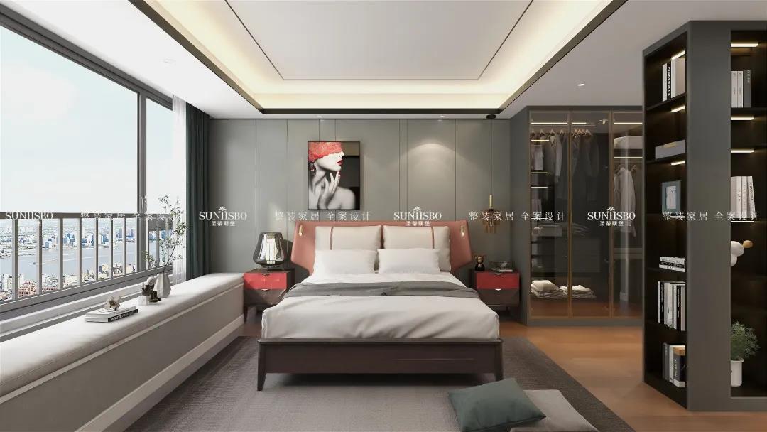 主臥的床是意式輕奢時尚與東方雅韻極致融合,沒有半點突兀和乖張。,意大利最出名的便是它的工藝與設(shè)計,時尚的莫蘭迪色系、輕奢金屬的運用,體現(xiàn)嫻熟的意式家具設(shè)計底蘊,兩者之間融合的相得益彰。