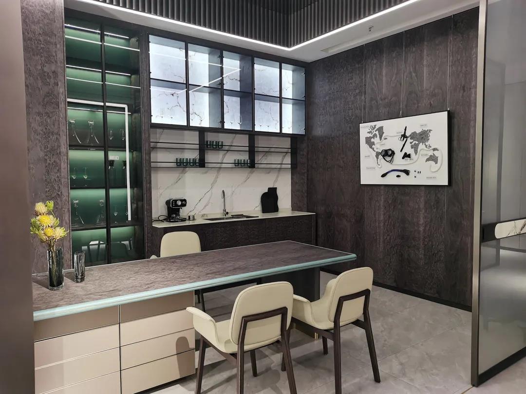 在展廳現場,各系列展廳極具潮流感的空間布局和場景設計,完美呈現了當下流行的空間組合和軟裝搭配思維;極具時尚品位的產品設計和色彩運用,賦予產品個性鮮明、多元混搭的時尚氣質,彰顯了必一運動bsport體育“整裝定制·全案設計”產品整合優勢和特色。