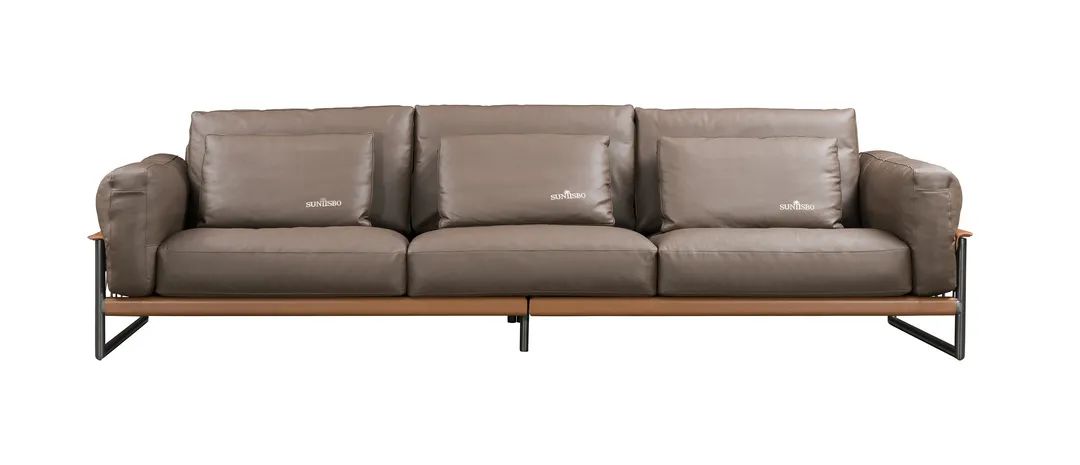 簡約的造型搭配流暢的金屬線條鑲嵌,不僅避免了沙發的沉悶,也為客廳增添了些許靈動。整體設計簡約而不簡單,經典耐看,搭配同款茶幾,與茶幾的金屬拉扣相呼應,輕松營造出客廳的高級感。